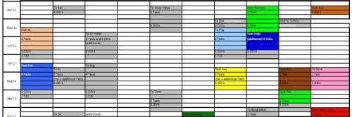 Each column is the schedule for a single team between April 2011 and October 2011. Notice the two blank columns? Those are two teams who have no international cricket between the World Cup and October.